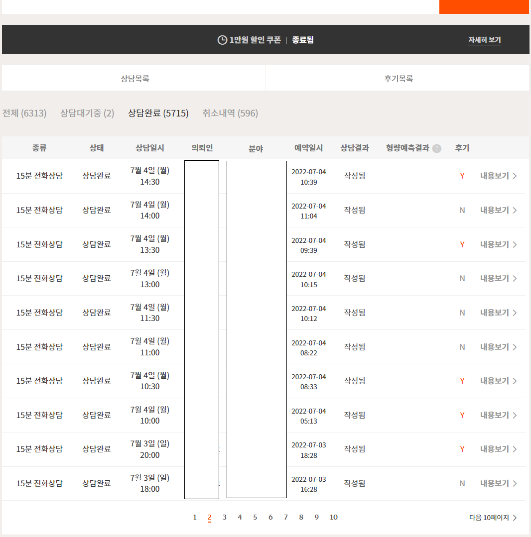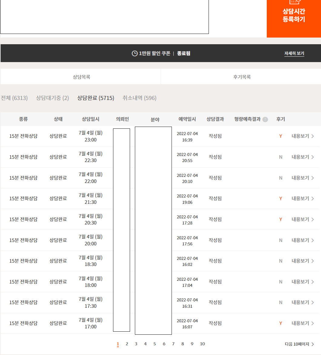 그러나 위 7.4.의 제 로톡 전화 상담 일정을 보시면, 제가 처음 상담을 시작하는 아침 10시부터 상담을 끝내는 11시 반까지 10시, 10시반, 11시, 11시반, (12시, 12시반은 점심 시간으로 슬롯을 열지 않음), 1시, 1시반, 2시, 2시반, (3시, 3시반, 4시, 4시반 일정은 선약으로 슬롯을 열지 않음), 5시, 5시반, 6시, 6시반, (7시, 7시반은 저녁 시간으로 슬롯을 열지 않음), 8시, 8시반, (9시는 기존 의뢰인과 통화 일정이 있어 슬롯을 열지 않음), 9시반, 10시, 10시반, 11시 이렇게 15분 전화 상담이 하루 18건 예약되어 있을 정도로 다음 시간이 꽉 차 있습니다(따라서 대부분의 경우에는 15분 이내에 상담을 끝내야 합니다). 변호사는 7분 정도 다음 상담의 사건 파악을 하여야 하고, 7분 정도 앞선 상담의 상담 결과를 정리하여 올려드려야 합니다. 또 1분은 물도 마시고 쉬어야 하지요.
