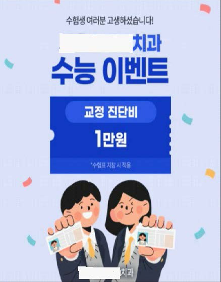 해당 광고는 수험표를 제시하면 교정 진단비를 1만 원으로 할인해 준다는 내용인데요.