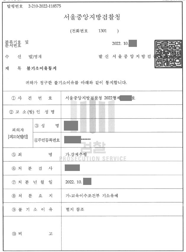 신체 접촉의 정도가 심한 편이 아니어서 비난가능성이 상대적으로 적었기 때문에 적극적으로 피해자와의 합의를 시도하였습니다. 형사조정을 통해 합의가 이루어졌고 결국 검찰로부터 교육조건부 기소유예 처분을 받아 어떠한 전과도 남기지 않고 사건을 잘 마무리할 수 있었습니다.