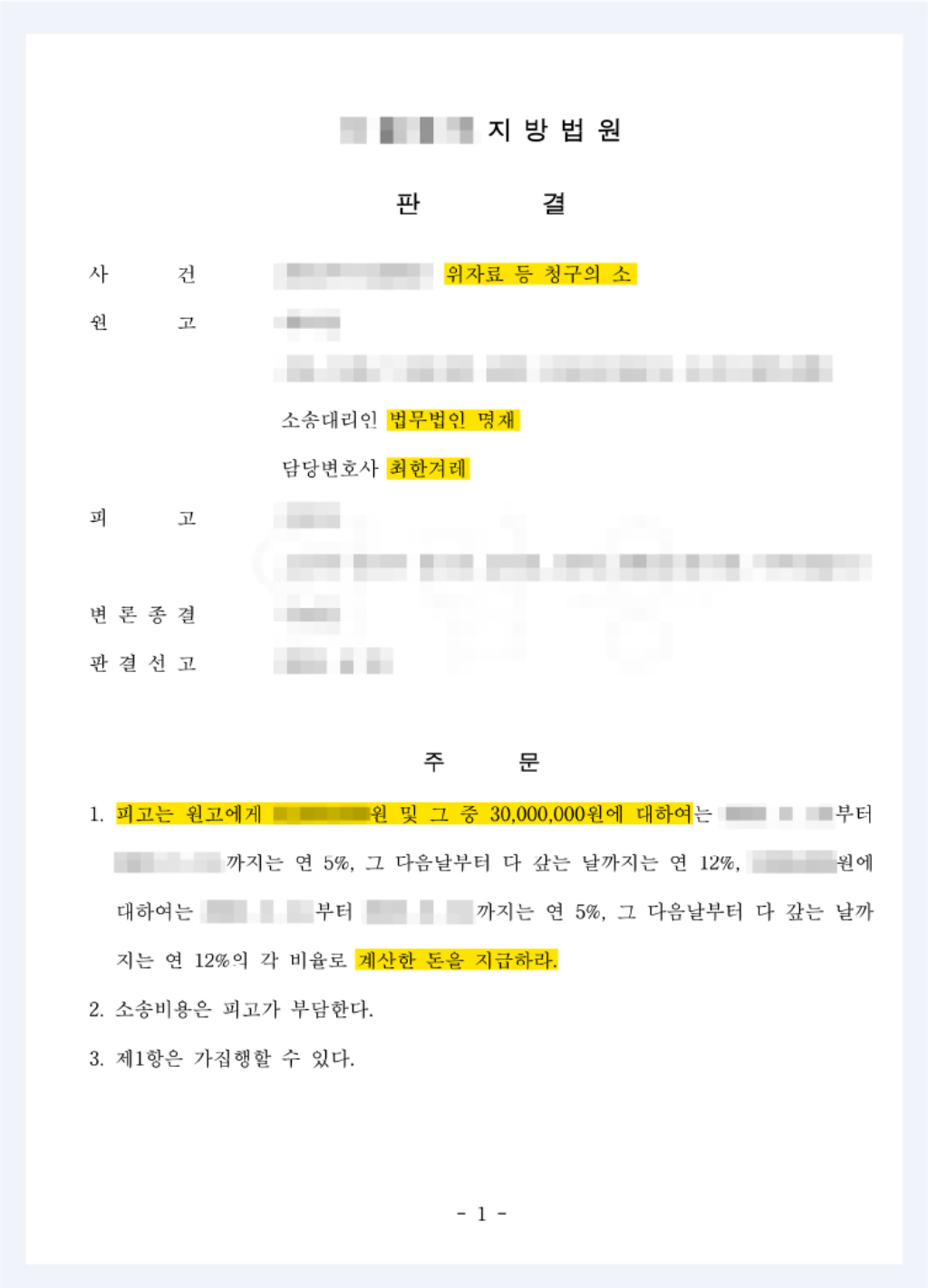03. 청구 금액 3,000만 원 모두 인정! 의뢰인의 승소