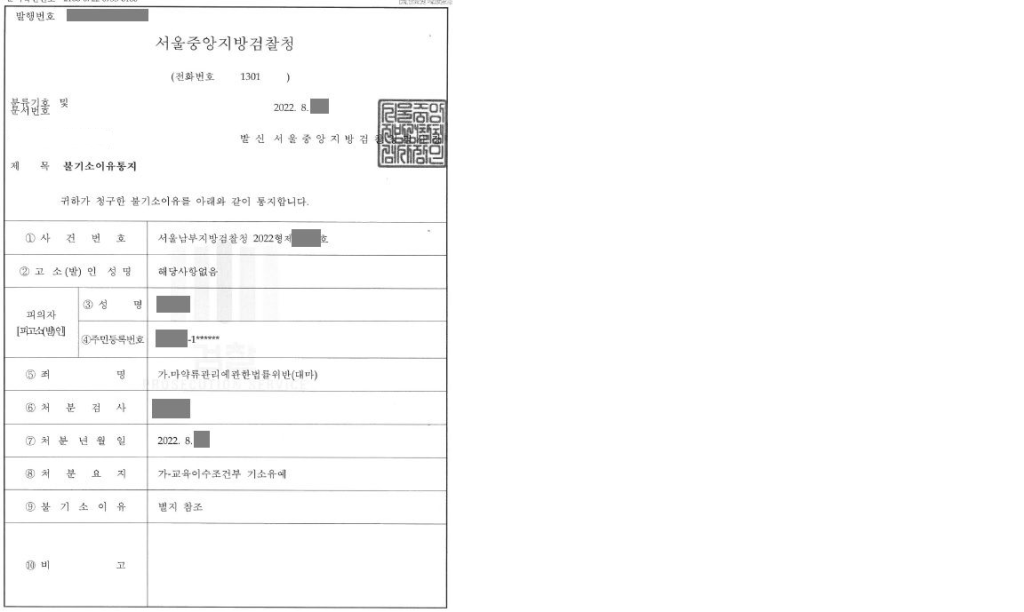 의뢰인은 검찰로부터 한국마약퇴치본부에서 실시하는 관련 교육을 이수할 것을 조건으로 기소유예 처분을 받았습니다. 단순 마약 소지, 투약과는 다르게 매매 및 매매알선의 경우 최소 1년 이상의 유기징역에 처할 수 있는 무거운 혐의였으나, 법무법인 명재의 도움이 필요한 적기에 법률적인 조력을 받고 아무런 범죄 전력을 남기지 않고 선처를 받아 사건을 종결할 수 있었습니다.