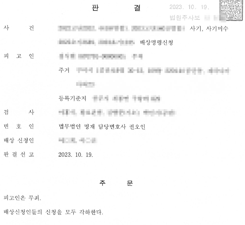 나아가 피해자 중 일부는 의뢰인에게 자신이 지급한 돈을 보전받고자 민사 소송까지 제기한 상태였기에, 형사 사건에서 의뢰인의 무고함을 입증하는 것은 더욱 절실했습니다.