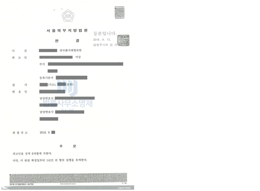 법원은 의뢰인에게 징역 6월, 집행유예 1년의 판결을 선고하였습니다. 의뢰인은 장기간의 구속 상태에서 풀려날 수 있었고, 징역형 외에 별도로 최대 1억 원의 벌금이 병과될 위험 또한 피하게 되었습니다.