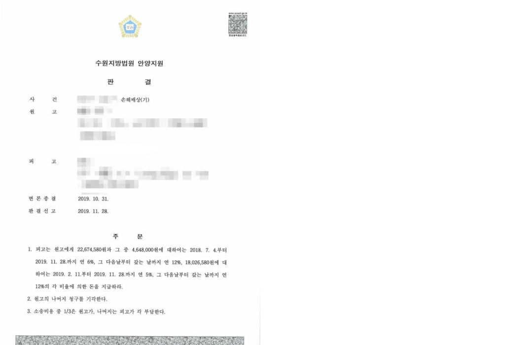 법원은 피고 프로그래머에게 원고 의뢰인 회사가 이미 지급한 착수금을 포함하여 용역계약 금액의 1.5배인 3,000만원을 손해배상으로 지급하라고 판결하였습니다. 비록 의뢰인 회사는 용역계약의 미이행으로 인해 어플리케이션 개발이 늦어지는 등 업무상 피해를 보았으나, 뒤늦게나마 용역계약 금액의 1.5배를 손해배상으로 받게 되면서 손실을 보전 받을 수 있게 되었습니다.