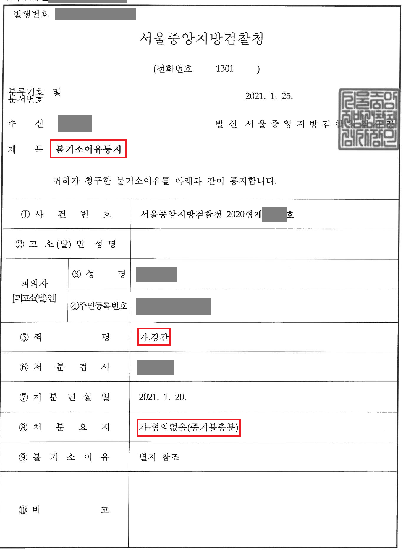 검찰은 법무법인 명재의 변론을 받아들여 의뢰인에게 무혐의 처분을 하였습니다. 거짓말탐지조사의 결과가 "거짓"반응이 나오고 피해자가 일관되게 피해 진술을 하고 있어서 상당히 위험한 상황이었으나, 저의 변론 덕분에 의뢰인은 성범죄 처벌의 위험에서 벗어나 일상으로 복귀할 수 있었습니다.