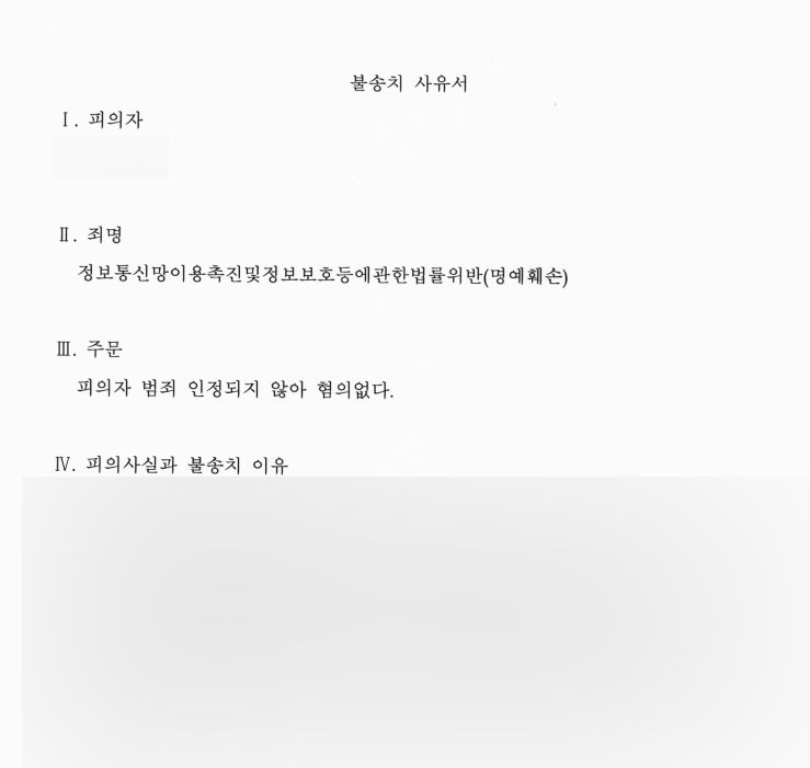 피의자에 대한 범죄 행위가 인정되지 않아 혐의 없음.