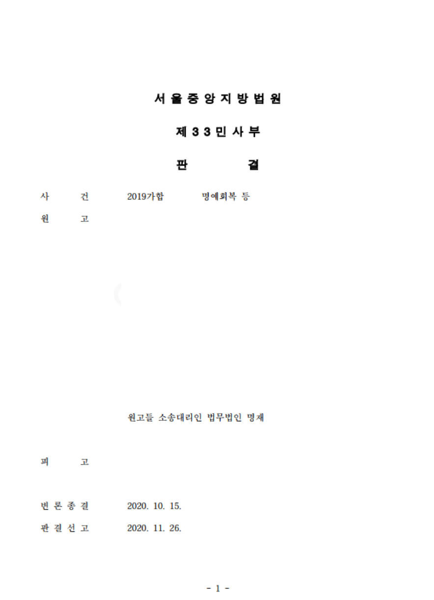 명예훼손/모욕 일반, 사이버 명예훼손/모욕, 손해배상, 소송/집행절차 | 승소
