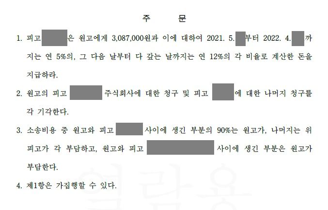 법원은 상가에 설치된 위반건축물 철거공사를 위해 영업을 하지 못한 기간(15일)의 카드매출 손실액의 70%인 308만원의 손해배상만을 인정하고, 스프링클러 파손으로 인한 손해배상 청구에 대해서는 원고의 청구를 모두 기각하는 판결을 선고하였습니다. 이로 인해 의뢰인은 임차인의 4,476만원 청구 금액 중 약 7%의 금액만을 배상하고, 오히려 임차인인 원고로부터 소송비용(변호사)의 일부를 돌려받을 수 있게 되었습니다.
