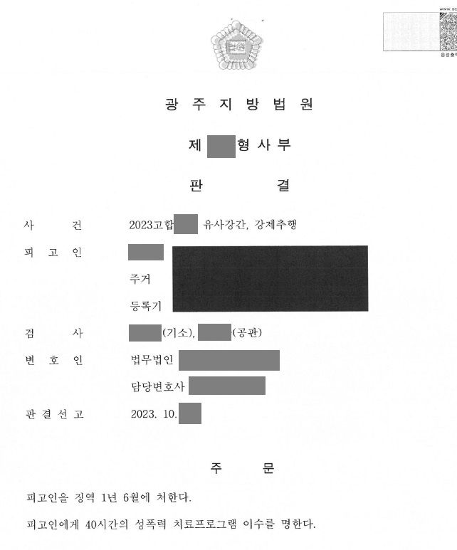 가해자는 끝까지 일부 범행만을 인정하면서 진심 어린 사과를 하지 않았는데, 만약 가해자가 범죄 전력이 없는 초범이 아니고, 피해자를 위해 형사공탁을 하지 않았다면 처벌 수위는 더 높게 나왔을 것입니다. 이렇듯 특히 성범죄에서는 피해자 진술의 일관성과 신빙성이 무엇보다 중요합니다. 비슷한 사건으로 고통을 당하고 고민하고 계시다면, 늦기 전에 변호사의 도움을 받아서 고소를 준비하는 것을 권해드립니다.