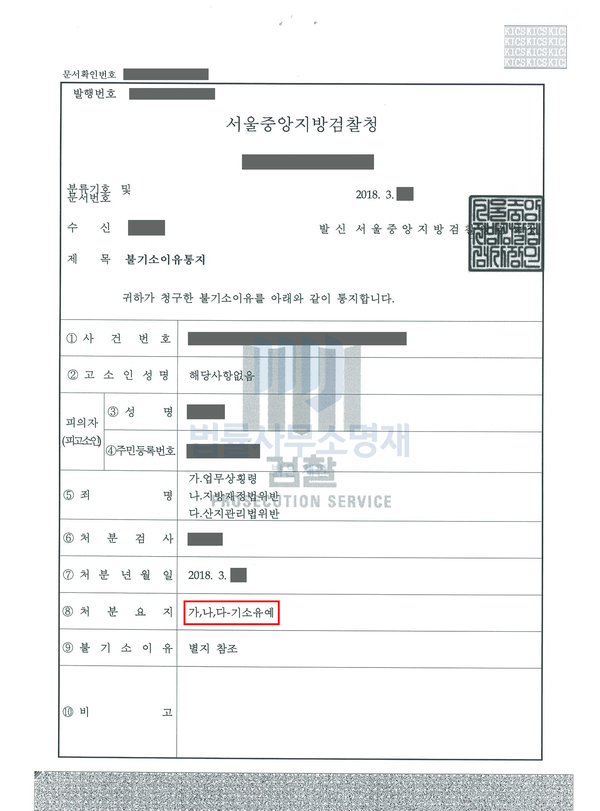 횡령/배임, 사기/공갈, 기타 재산범죄, 세금/행정/헌법 | 불기소처분