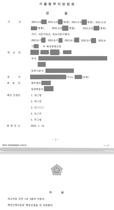 의뢰인은 700만원의 합의금을 지급받고 현금수거책에게 처벌불원서를 작성해 주었습니다. 이는 해당 사건과 관련되어 의뢰인이 입은 피해 금액 4,000만원 중 일부이긴 하지만 다른 피해자들은 피해 금액의 5~10%만의 금액으로 합의가 이루어진 것에 비해 좋은 결과였습니다. 피해자와의 합의에도 불구하고 가해자는 징역 1년 3월의 실형이라는 처벌을 받게 되었습니다.