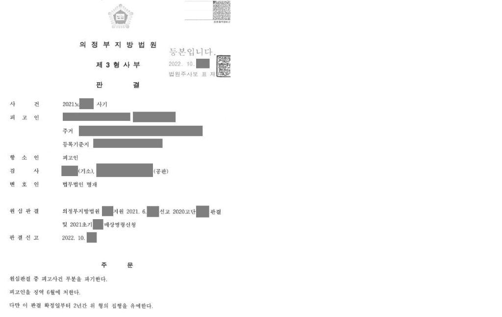 의뢰인은 고소인 측과 합의를 하였고, 법원은 의뢰인에게 징역 6월, 집행유예 2년의 판결을 선고하여 다행히 실형을 면할 수 있었습니다. 아무리 연인 간의 금전거래라고 하더라도 허위사실을 이유로 돈을 빌린다거나, 상대방을 기망한 사실이 있는 경우, 거액의 돈을 빌리고 갚지 않는 경우에는 사기죄가 될 수 있음을 유념하셔야 합니다.