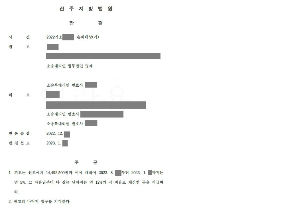 법원은 가해자인 술집 사장에 대해 1,500만원의 손해배상액을 인정하였습니다. 이로 인해 가해자인 술집 사장은 형사처벌 외에도 상당한 손해배상을 부담하게 되었고, 합의 없이 판결이 선고되었기 때문에 이 민사소송의 판결과는 별개로 의뢰인이 병원 치료를 받으면서 건강보험공단이 부담한 부분에 대해서는 구상금 청구까지 당하게 되었습니다.