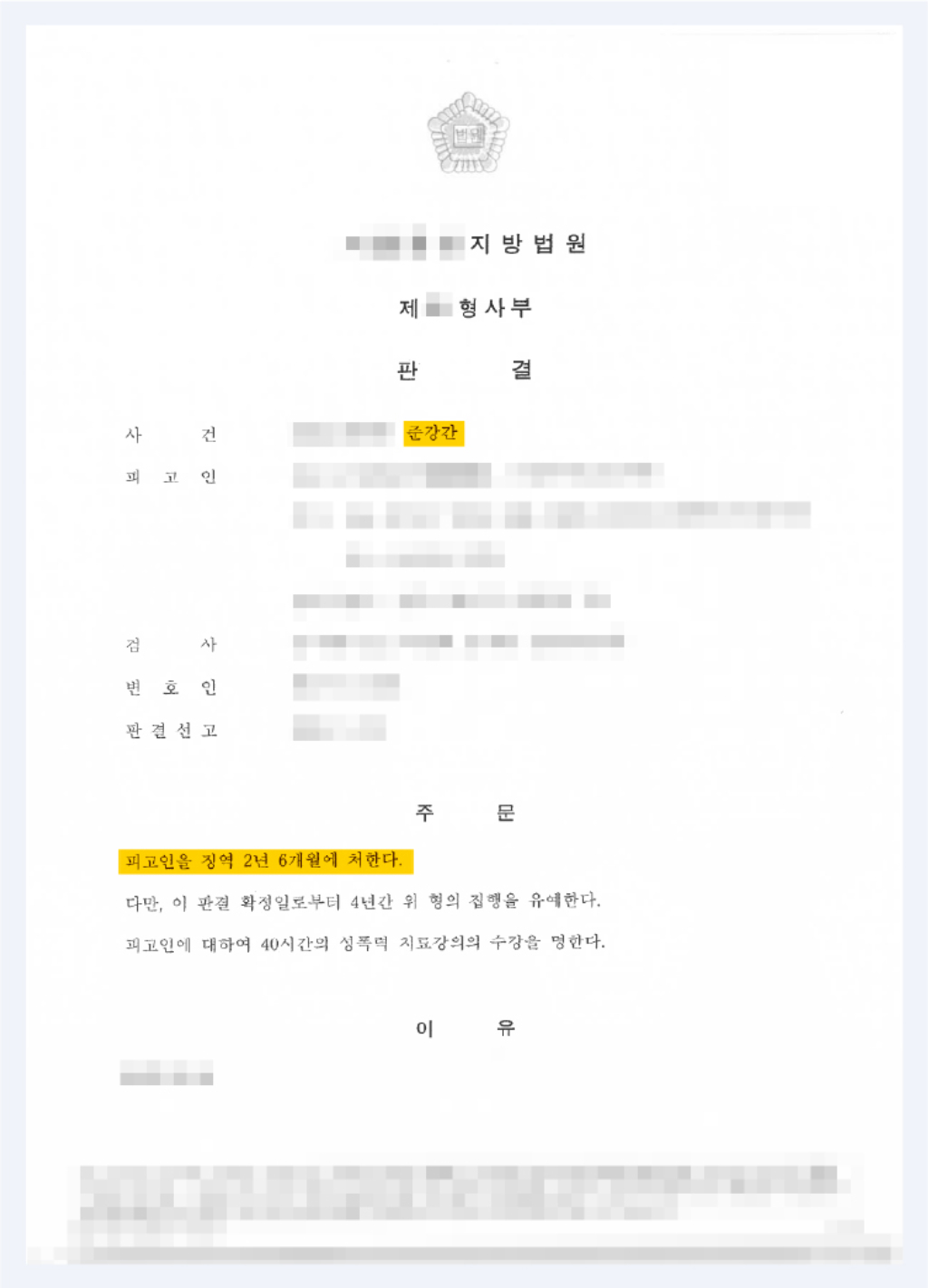 재판부는 배진성 변호사의 치밀한 증거 확보와 법리적 주장에 힘입어 가해 남성에게 징역 2년 6개월의 실형을 선고했습니다. 합의한 사건이지만 재판부는 이례적으로 높은 실형을 선고한 것인데요. 의뢰인은 비로소 그날의 상처에 대한 법적 판단을 받고, 조금이나마 위로를 얻을 수 있었습니다.