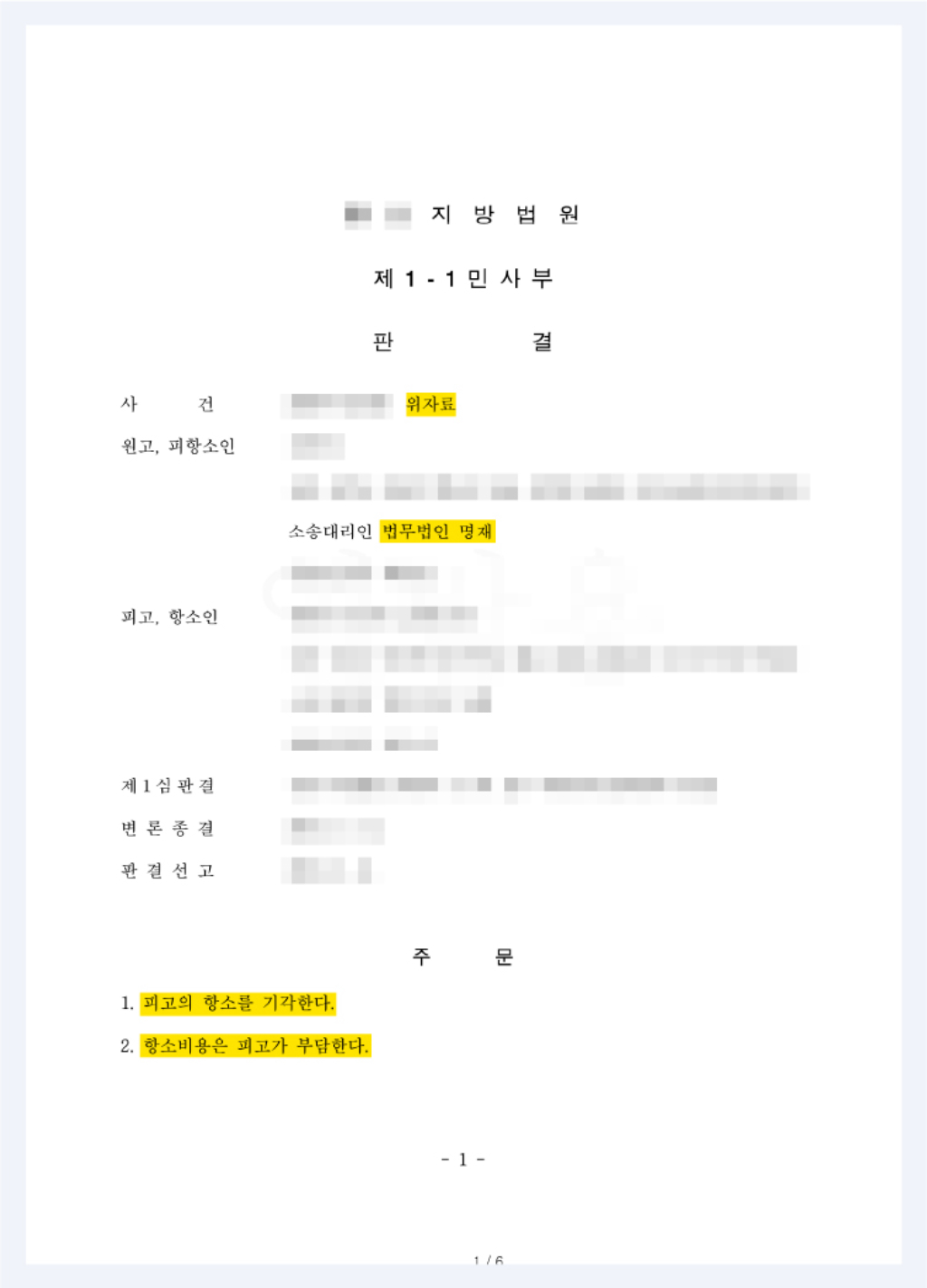 더 나아가 1심에서 일부 의뢰인이 부담해야 했던 소송비용까지도 2심에서는 전부 상간녀가 부담하도록 판결해 완전한 승소를 끌어냈죠.