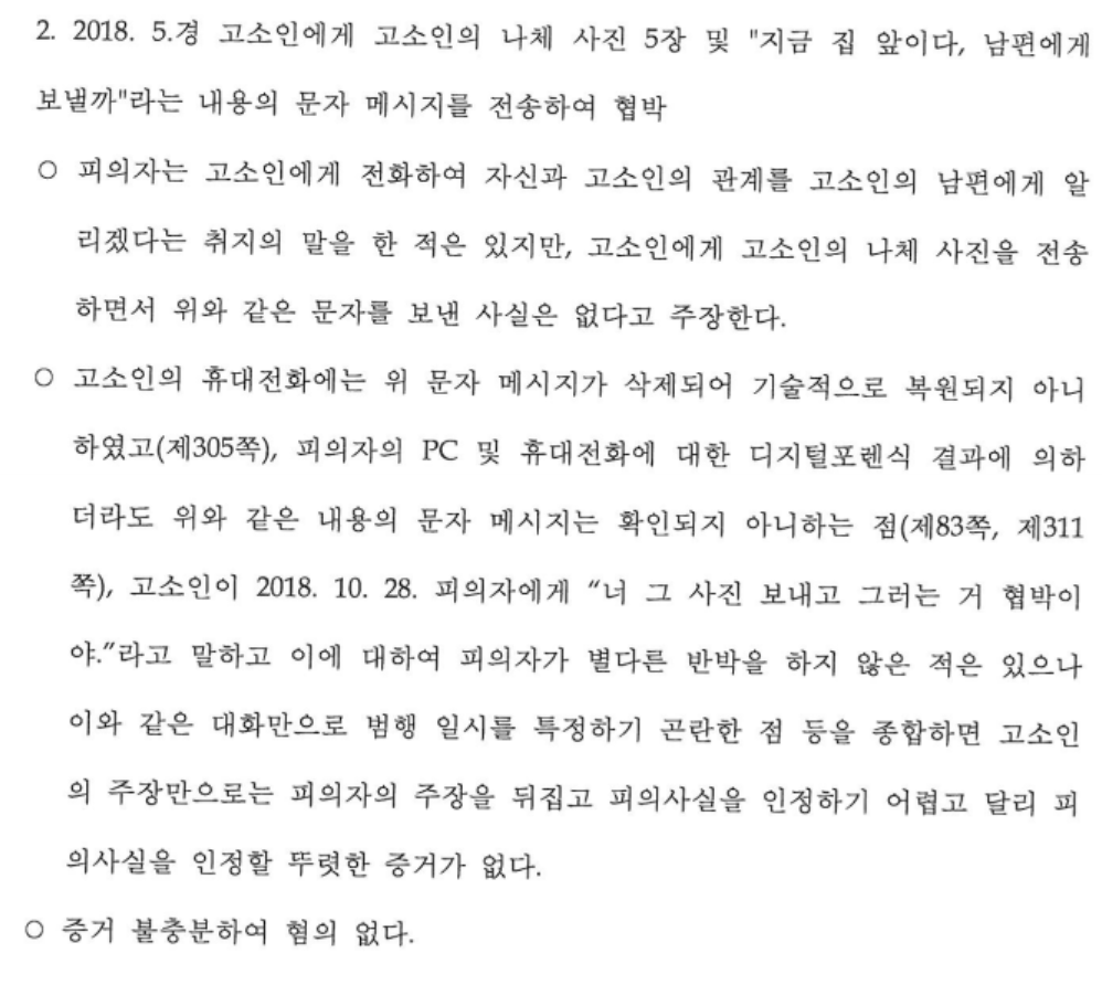 카메라등이용촬영, 협박 각 무혐의