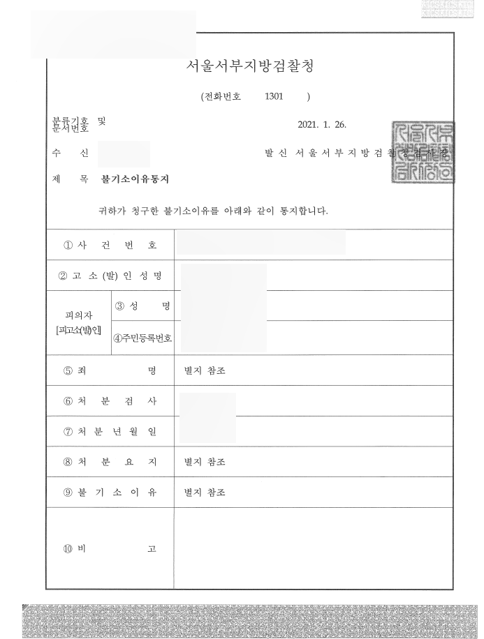위의 사실과 달리 피의 사실을 인정할 증거가 없으며 증거가 불충분하여 혐의가 없다고 판단되었습니다.