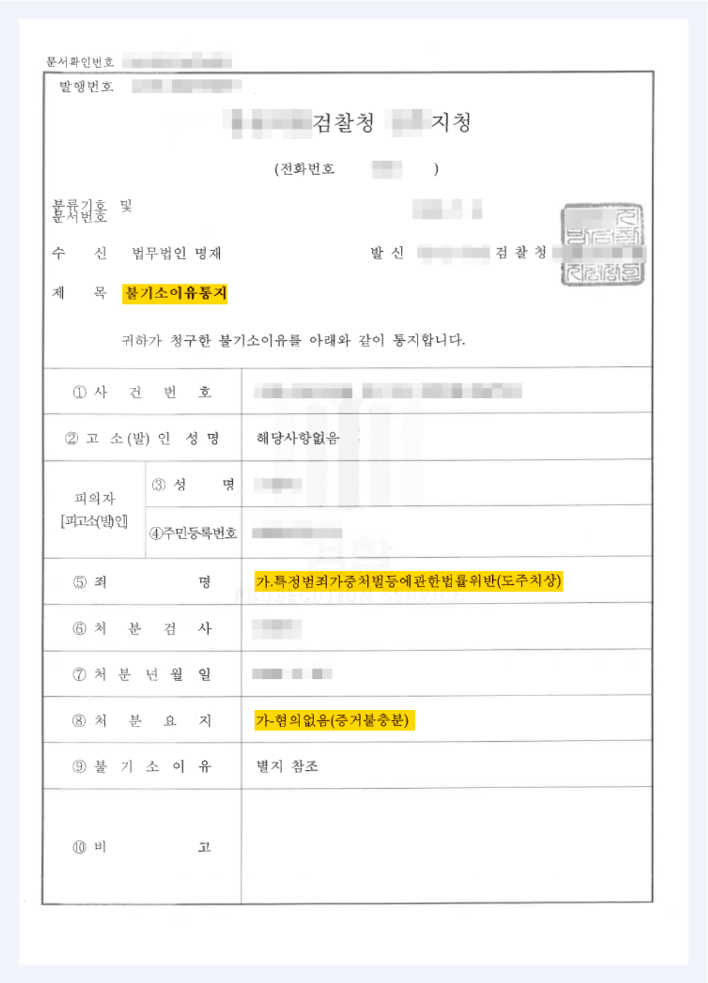 03. 경찰의 송치에도 불구하고 검사로부터 무혐의 처분을 받은 의뢰인