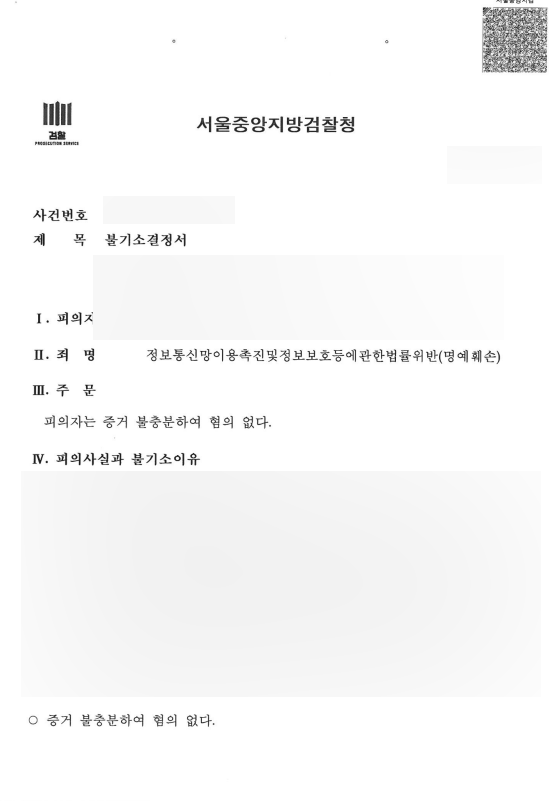 따라서 의뢰인이 작성한 댓글은 피해자들의 명예가 훼손될 여지가 없다고 할 수 있습니다.