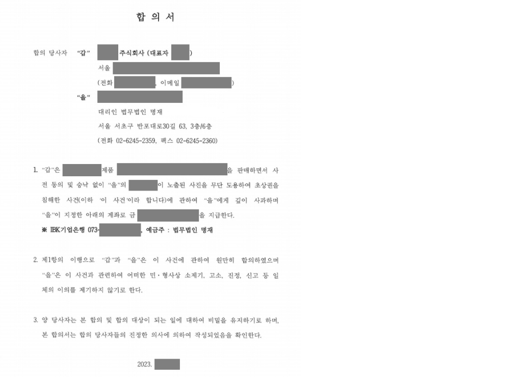 의뢰인은 형사 고소까지 생각하고 있었지만 현실적으로 민사상 초상권 침해에 해당할 뿐 범죄가 성립하기는 어려운 사안이었습니다. 그래서 먼저 상대방 회사 측과 합의를 시도해 보고 합의가 이루어지지 않으면 민사 소송으로 손해배상을 청구하기로 하였습니다.