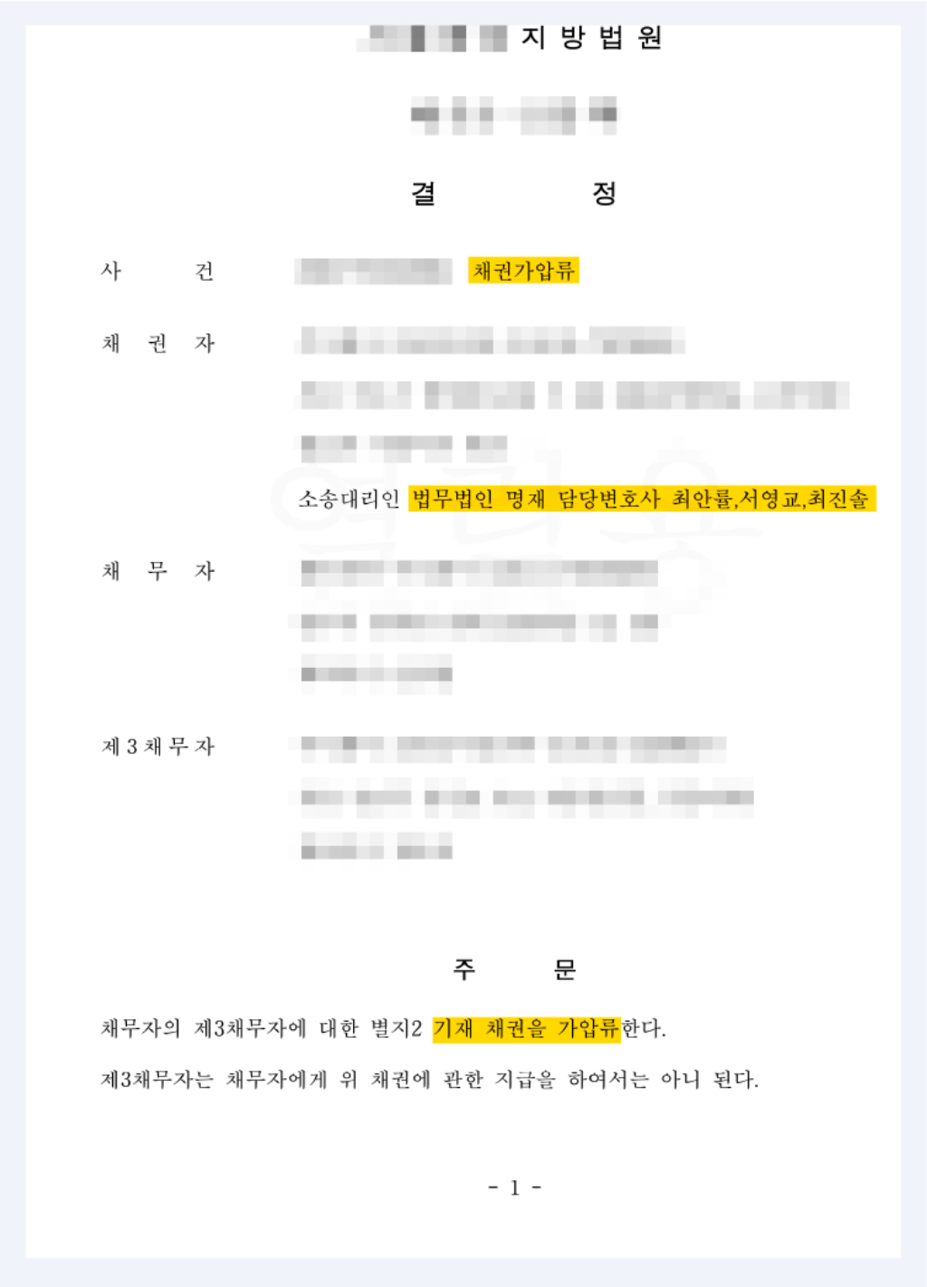 03. 최안률 변호사 덕분에 수익권 가압류 결정을 받을 수 있었던 의뢰인