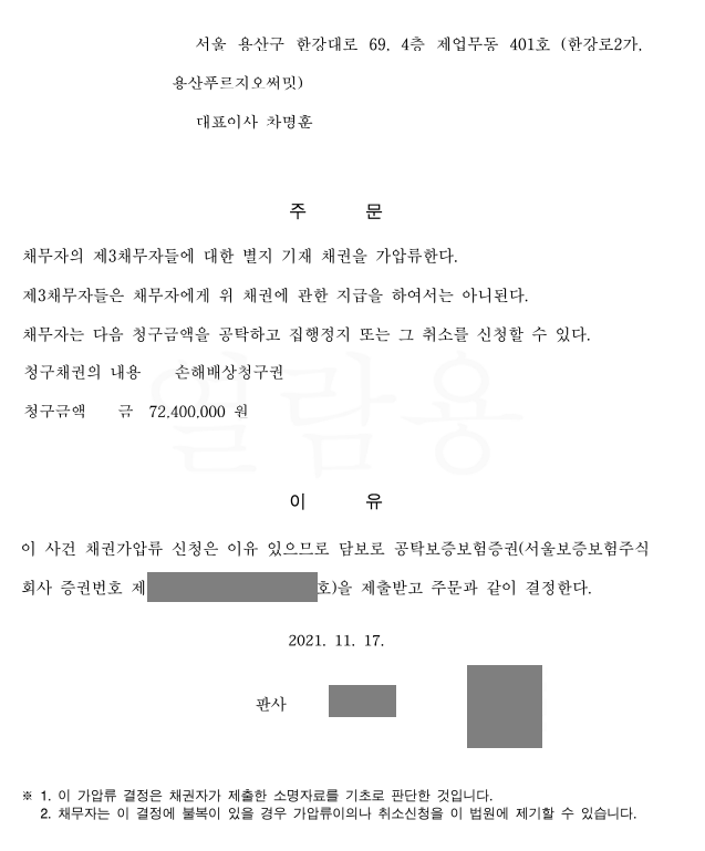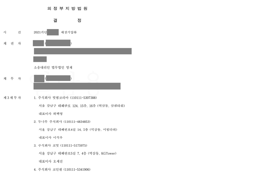 신속한 조치로 인해 국내 4대 코인거래소에 개설된 가해자 명의의 계좌와 지갑에 대해 채권가압류가 이루어졌고, 의뢰인은 다른 피해자들보다 먼저 채권을 확보해놓은 상태에서 훨씬 편안한 마음으로 민사 손해배상 청구소송을 진행할 수 있게 되었습니다.