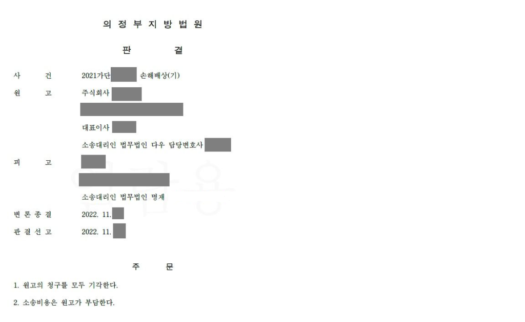 법원은 법무법인 명재의 변론을 모두 받아들여 원고 청구를 전부 기각하는 판결을 선고하였습니다. 원고에게는 단순히 손해배상을 받아내는 것뿐만 아니라 민사소송을 통해 경쟁사의 내부자료(영업비밀)를 획득하기 위한 목적이 있었던 것으로 보이는데, 결국 의뢰인은 원고의 목적을 좌절시키고 영업비밀을 지킬 수 있었습니다.