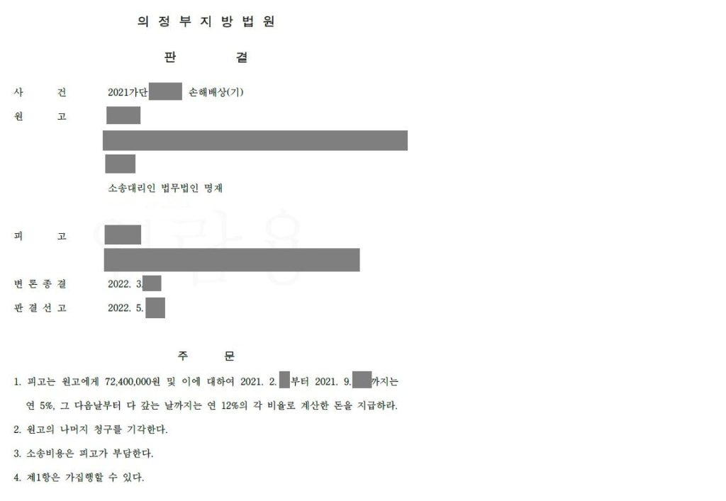 가해자는 재판에서도 끝까지 혐의를 인정하지 않고 무죄를 주장하였으나, 법원은 징역 1년 4개월의 실형을 선고하였습니다. 법무법인 명재는 가해자를 상대로 민사소송으로 손해배상도 청구하여 피해 금액인 7,240만원과 그동안의 이자에 대해서까지 승소 판결을 받았으며, 부동산 등 일반적인 신용조사로 확인되는 재산을 남겨놓지 않은 가해자로부터 피해 금액을 변제받기 위해 여러 곳의 코인거래소 계좌까지 압류하였습니다.