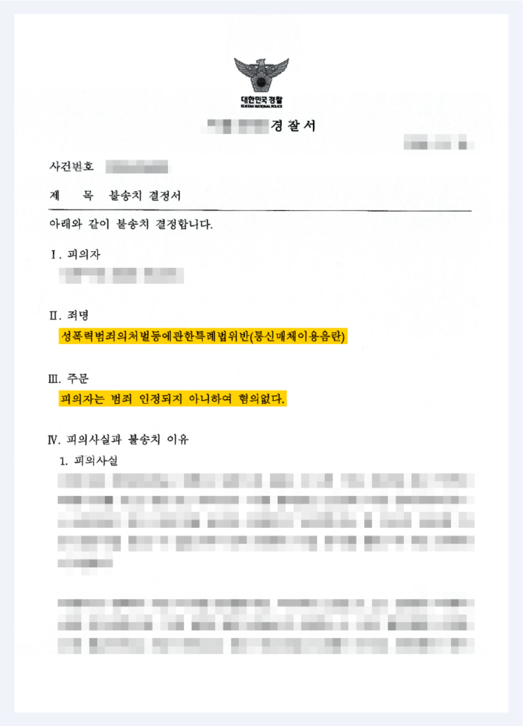그 결과, 경찰은 배진성 변호사의 탄탄한 논리에 근거해 최종적으로 '무혐의' 결정을 내리고 사건을 종결짓게 되었습니다.