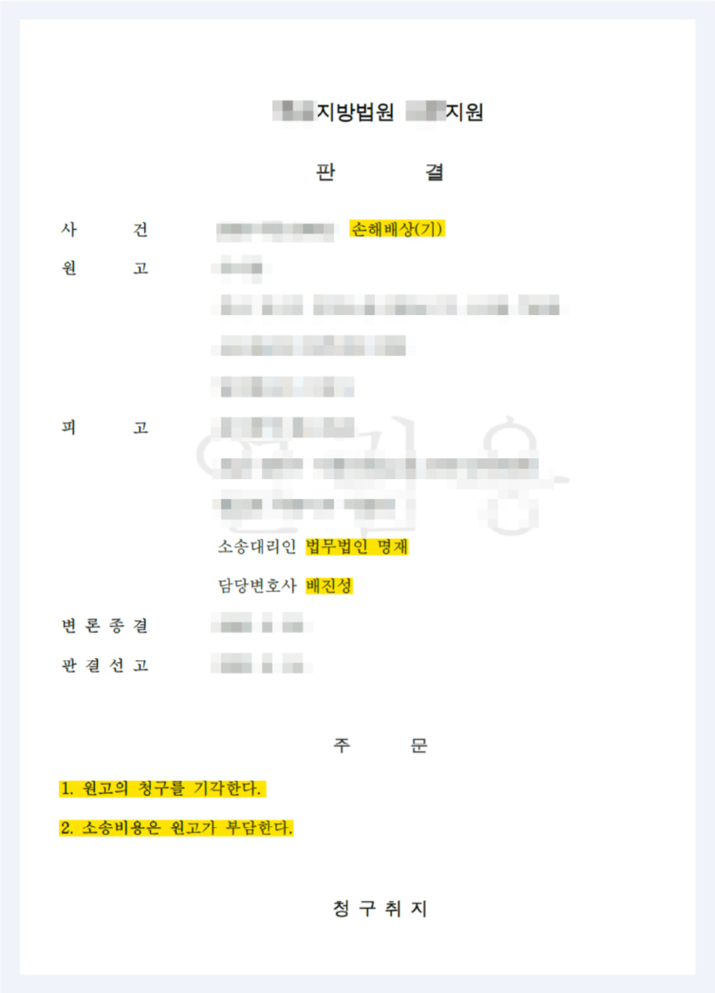 03. 원고의 청구 기각, 소송비용 원고 부담! 100% 승소를 얻어낸 배진성 변호사