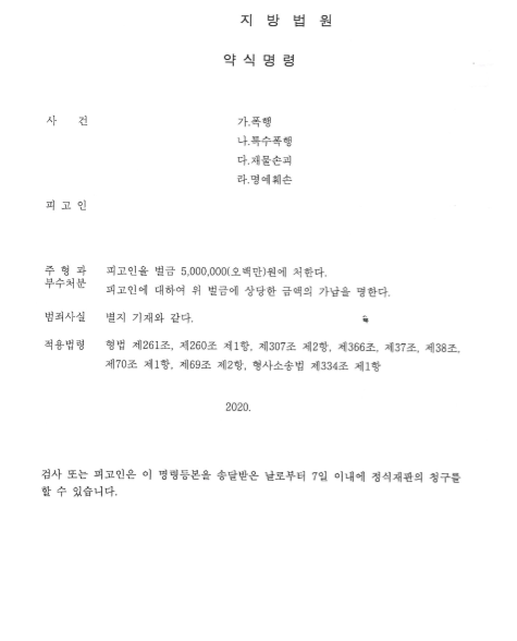 그 결과 위 네 가지 혐의 모두에 대하여 피의자에게 벌금형이 선고되었습니다.