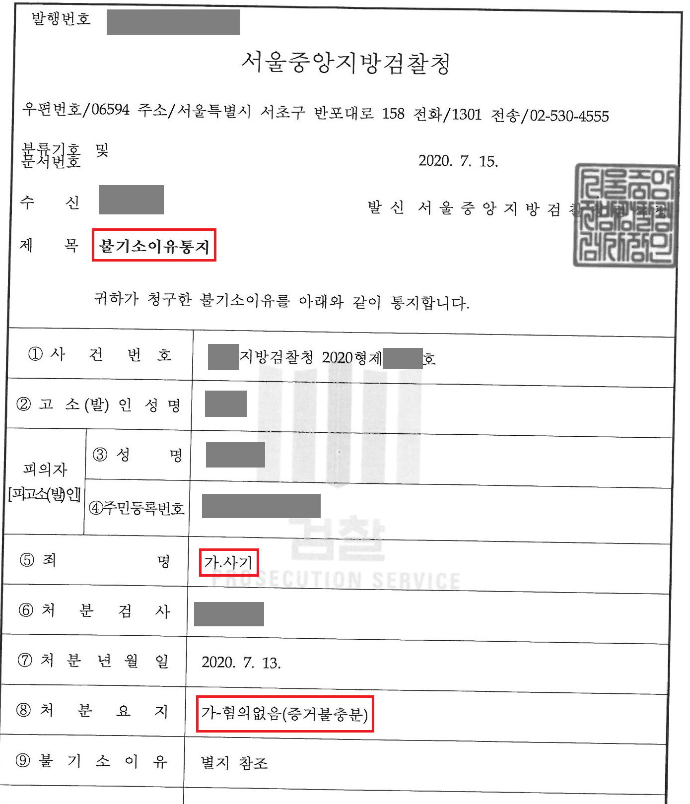 만일 기소가 되었다면 의뢰인은 형사처벌을 받을 뿐만 아니라 민사소송을 통해 원금에 이자까지 반환을 해야 하는 상황이 발생할 수 있었으나, 다행히 검찰은 법무법인 명재의 변론을 받아들여 의뢰인의 사기 혐의에 대해 불기소처분을 하였습니다.