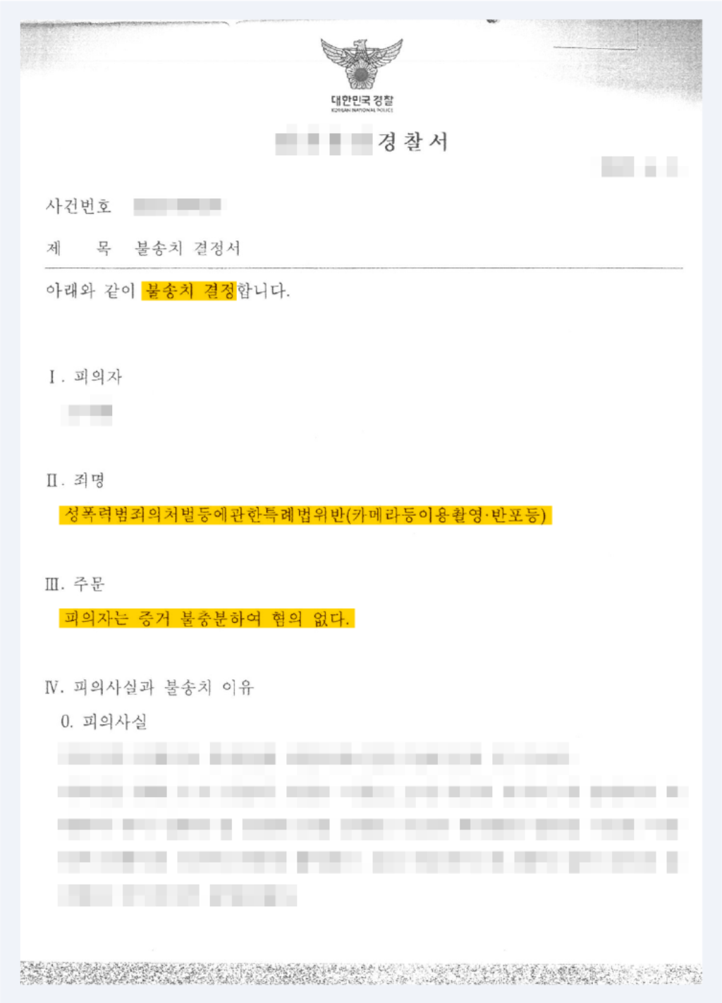 몰카/카촬죄/성범죄 | 불송치(혐의 없음)