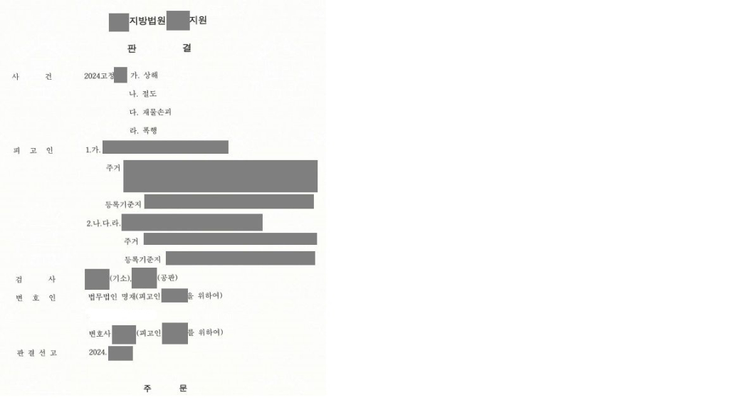 법원은 상대방의 폭행, 재물손괴, 절도에 대하여는 모두 유죄가 인정된다며 벌금 200만원을 선고하는 한편, 의뢰인의 상해 혐의에 대하여는 우리의 변론을 받아들여 피해자의 진술을 믿기 어렵다며 무죄를 선고하였습니다. 상대방의 거짓말로 전과자가 될 뻔했던 의뢰인은 다행히 아무런 처벌 없이 사건을 마무리할 수 있었습니다.