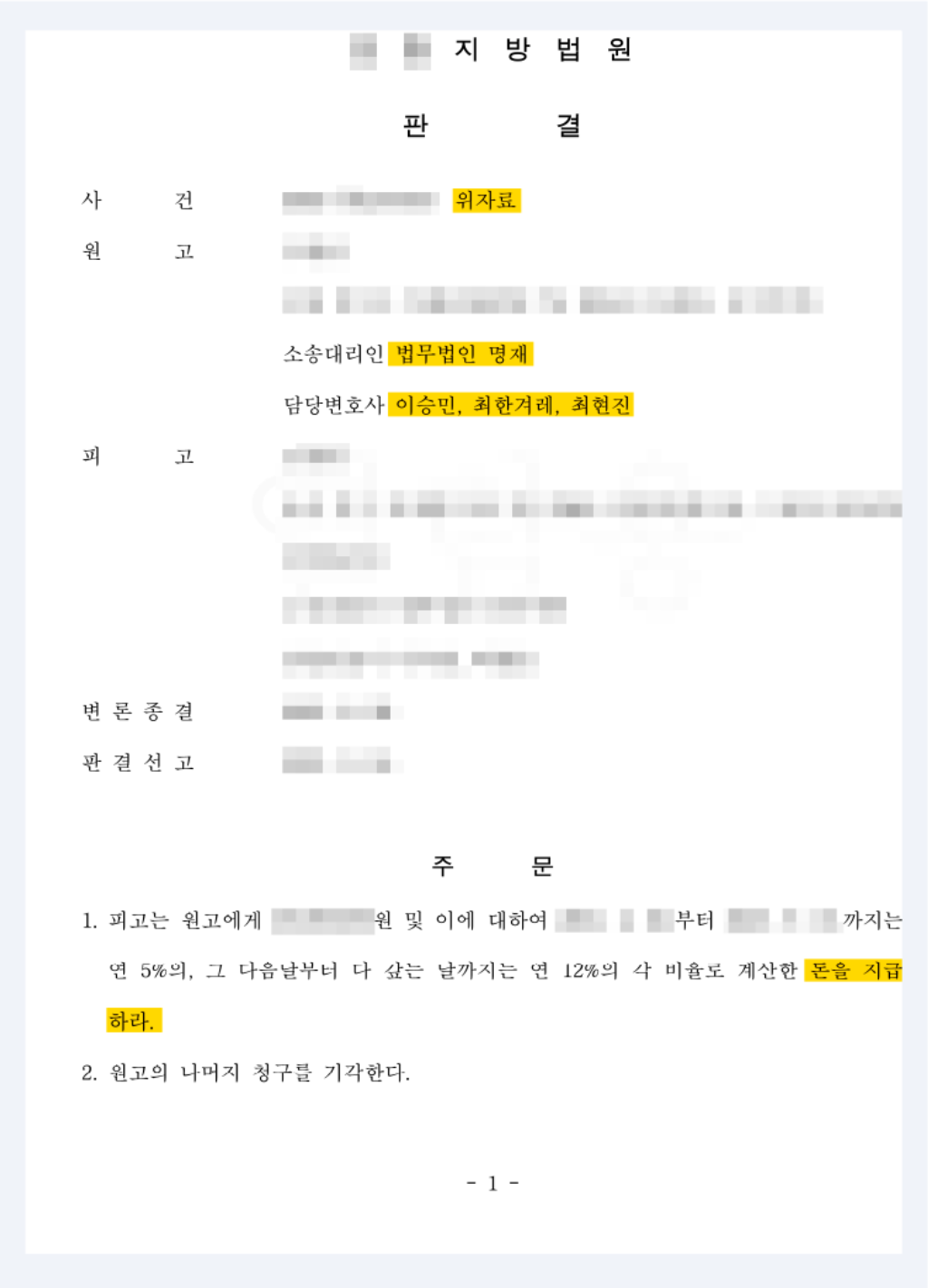 최한겨레 변호사의 치밀한 변론과 노력 덕분에, 비록 증거가 제한적이었음에도 불구하고 불륜 사실이 인정되었습니다. 이에 따라 의뢰인은 통상적인 수준보다 높은 위자료를 지급받을 수 있었으며, 지연 손해금 기산일도 아내와 상간남의 불법행위가 발생한 시점으로 정해져 의뢰인의 권리를 보다 철저히 보호받을 수 있었습니다.