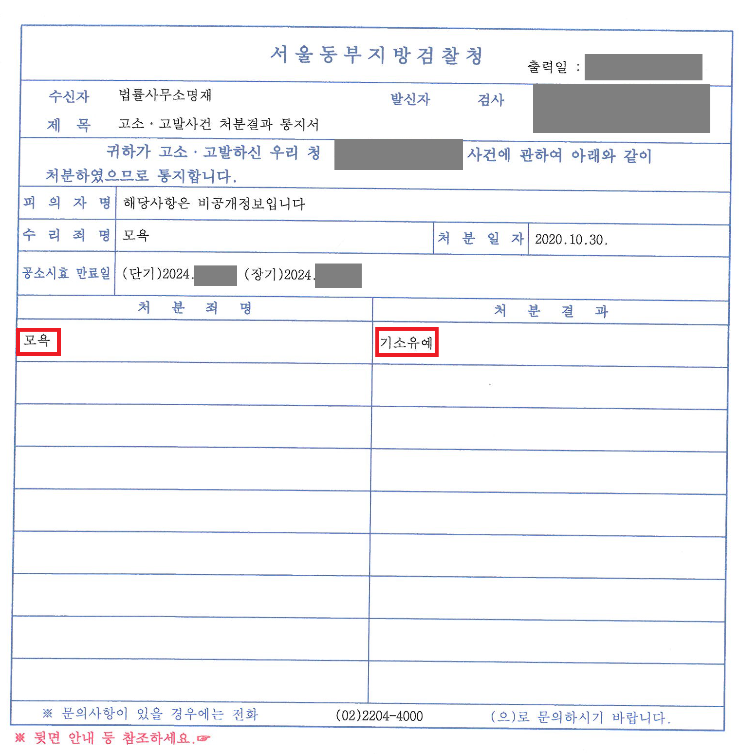 초범이라는 점 등이 고려되어 기소유예 처분으로 종결되었지만, 문자나 카카오톡 등 아무런 증거도 남아있지 않은 상황에서 현장에서 뒷담화를 들은 사람의 제보를 증거로 모욕죄 혐의를 인정받은 사건이라는 점에서 의의가 있다 할 것입니다.