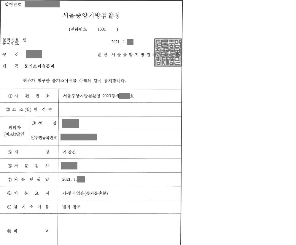 검찰은 법무법인 명재의 주장을 그대로 받아들여 의뢰인에게 무혐의처분을 하였습니다. 자발적으로 받은 거짓말탐지기 조사에서 긴장한 탓인지 ‘거짓반응’이 나왔음에도 불구하고 무혐의 처분을 받은 것이었고, 의뢰인은 형사처벌을 피하고 사회로 무사히 복귀할 수 있었습니다.