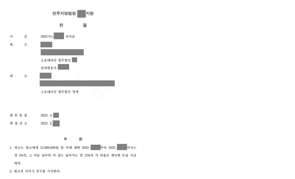 법원은 의뢰인에게 1,200만원의 손해배상금을 지급하라는 판결을 선고하였습니다. 유부남이라는 것을 알게 된 이후에도 만남을 지속하였기 때문에 손해배상 그 자체는 어쩔 수 없었으나 금액을 최소화한 판결이었고, 의뢰인은 법정에 출석하는 것 전혀 없이 불과 3개월 만에 사건을 마무리 지어 불명예스러울 수밖에 없는 소송을 조속히 종결지을 수 있었습니다.