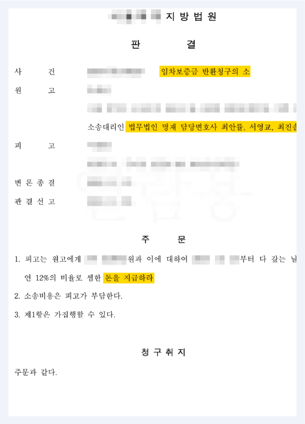 03. 최안률 변호사 덕분에 임대차 보증금 반환은 물론 지연이자까지 지급받을 수 있게 된 의뢰인