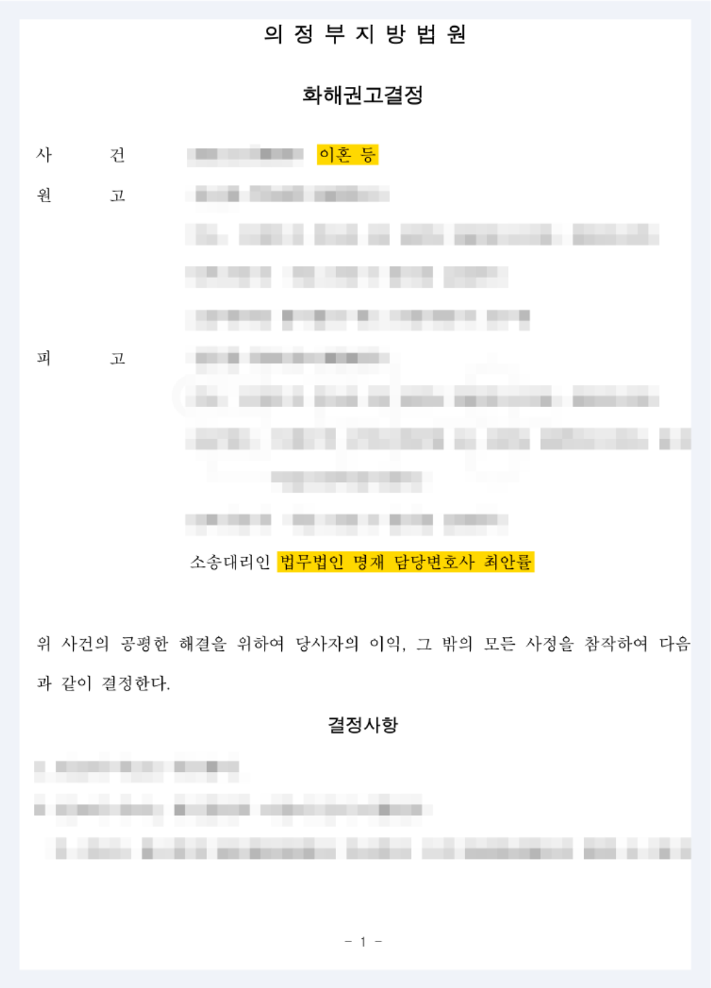 이혼, 가사 변론에 깊은 이해를 통해 의뢰인을 따뜻하게 보듬어 줄 수 있는 최안률 변호사의 조력이 여러분의 상처를 치유할 수 있다면 좋겠습니다.