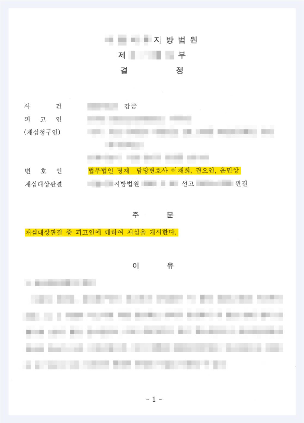 재심은 단순히 판결을 다시 보는 절차가 아니라, 기존의 판결을 재검토하고 잘못된 판결을 바로잡는 중요한 기회입니다. 하지만 이미 '확정된 정의'를 다시 흔드는 절차이기에 그 문턱은 매우 높습니다. 그런데도 이재희 변호사는 검찰의 항고 기각에도 굴하지 않고 끝까지 법적 정의를 추구했습니다. 그 결과, 의뢰인은 억울한 감금 혐의에서 벗어날 기회를 얻게 되었죠.